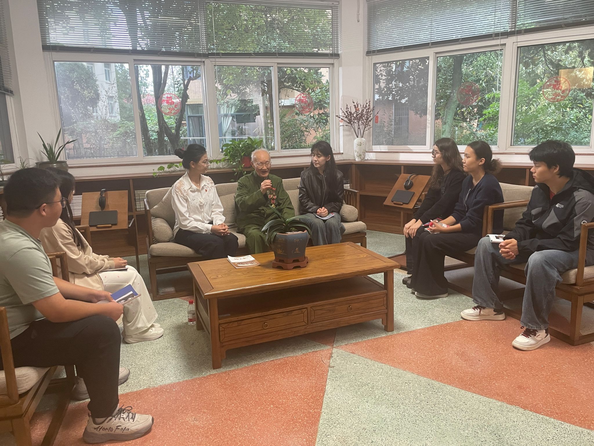 在干休所,同学们围坐在抗美援朝老首长胡恒隆身边,认真聆听胡爷爷讲述那段烽火连天的岁月。他回忆起战场上的激烈战斗、战友间的深厚情谊,英勇事迹如同一束强光,穿透历史,让同学们深刻感受到先辈们的家国情怀与无畏担当。
