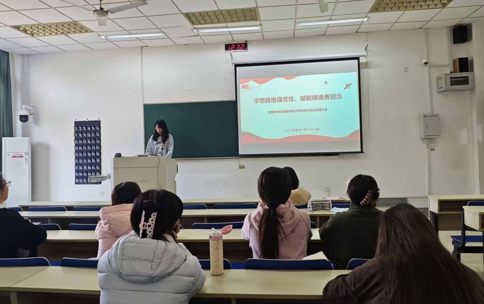 11月21日中午,营销与物流管理学院分党校在德业楼108开展“2025-2026-1期党的发展对象”党校培训班研学总结会。会议由本期分党校班长朱婧瑄主持。