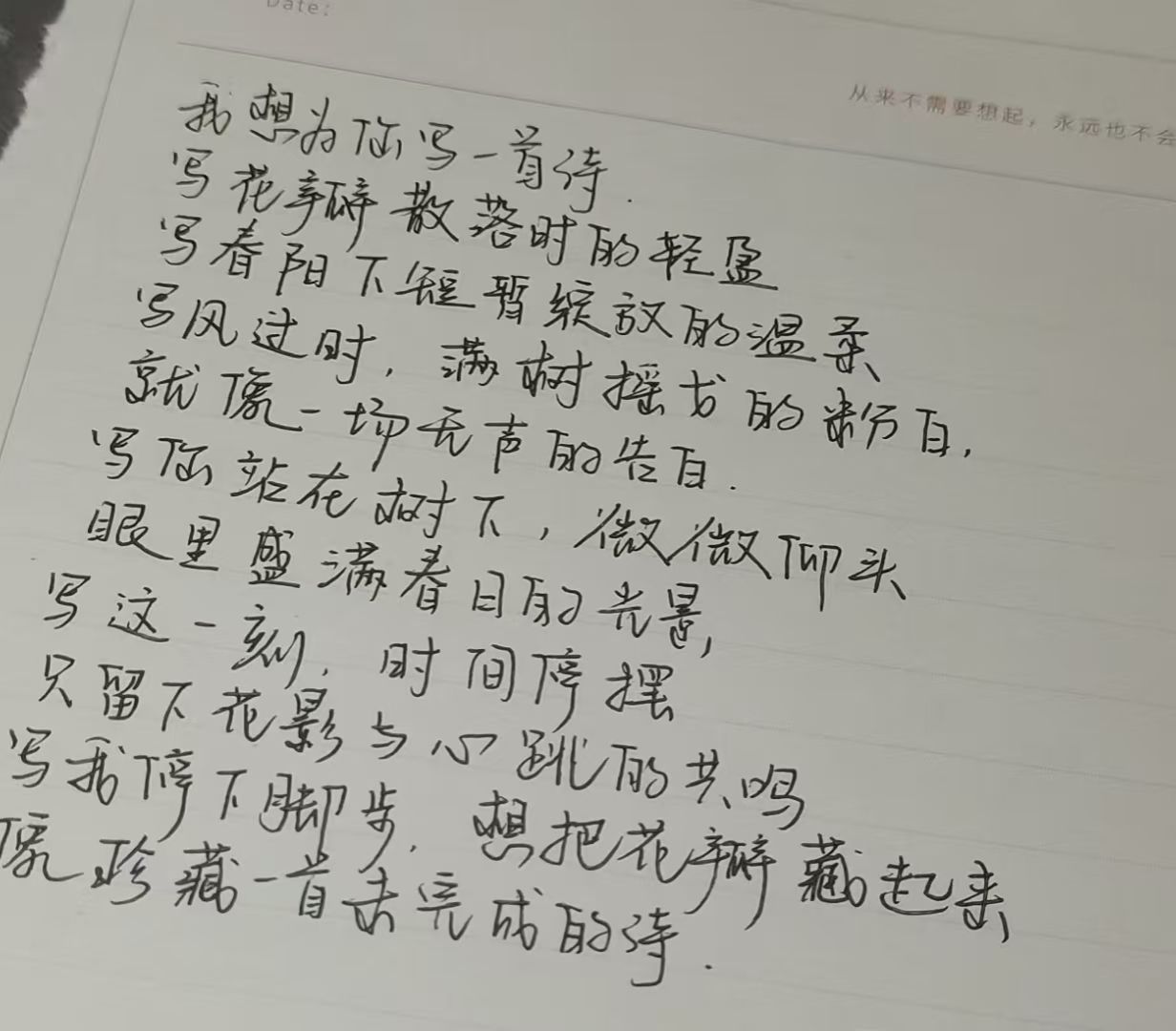 在“萤光”志愿者们的带动下,同学们也积极参与到这场绿色行动中来,以创意十足的方式表达对植物的关爱。他们有的为植物手写诗歌,将文字与自然之美结合;有的用易拉罐培育萝卜苗,展现环保巧思;还有的同学为树木悬挂手写祝福卡片,以独特方式传递守护绿意的心意。