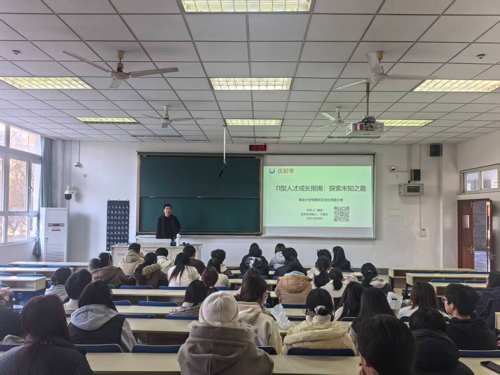 为助力我院学子高效备赛,11月28日中午,营销与物流管理学院邀请校2020届校友、优职享信息科技有限公司培训专家于晨光,在德业楼118开展了“挑战杯”大学生创业计划竞赛(以下简称“小挑”)专题培训,党委书记刘颖、副书记仲巧林、分团委书记徐璐以及全体参赛队伍参与培训。