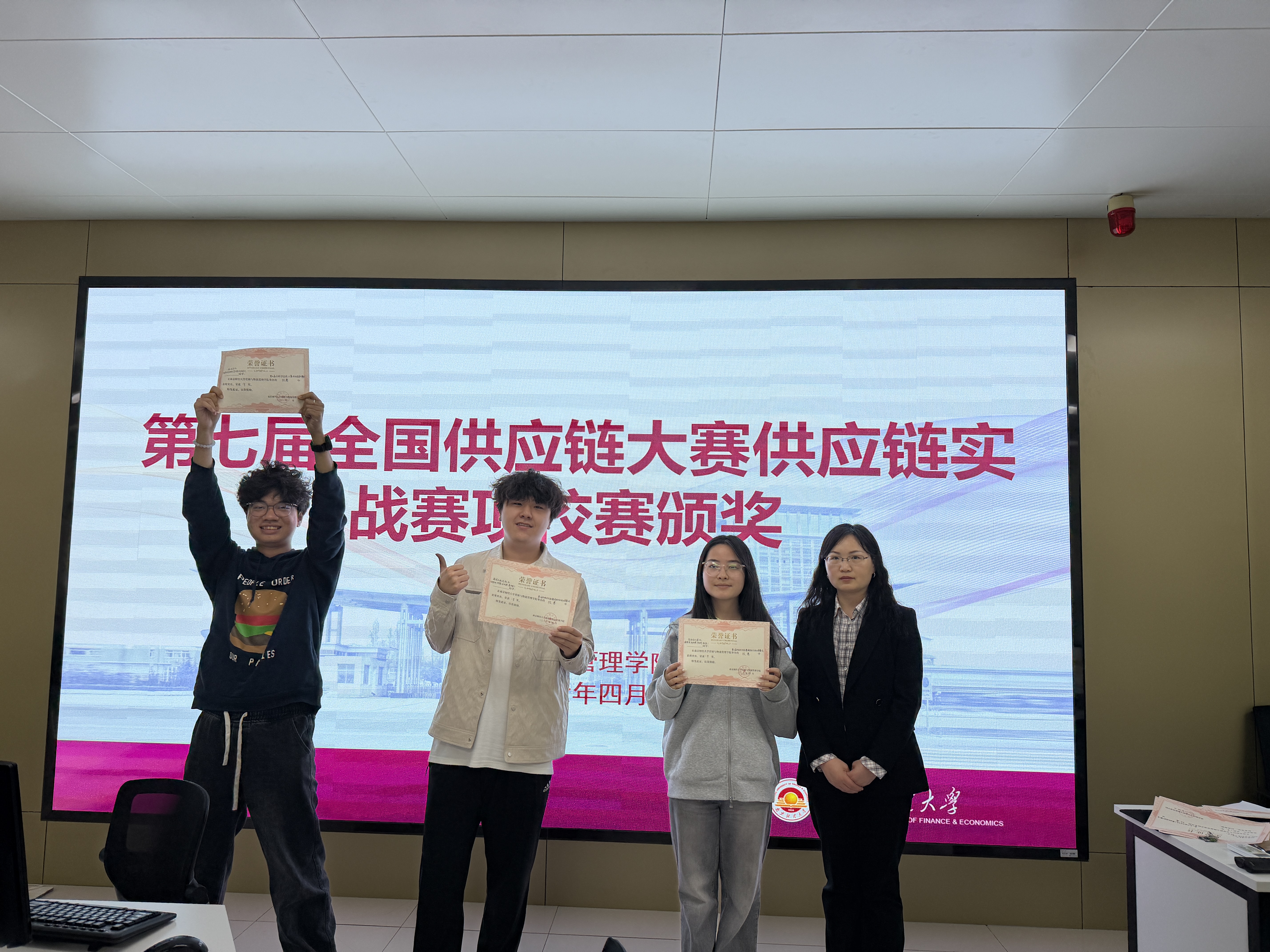 4月9日中午,我院在江苏省现代物流重点实验室(德业楼321)组织开展第七届全国供应链大赛选拔赛。学院党委书记刘颖、物流管理系主任范建昌、专任教师赵明轩担任颁奖嘉宾。党委副书记仲巧林全程统筹协调比赛工作。