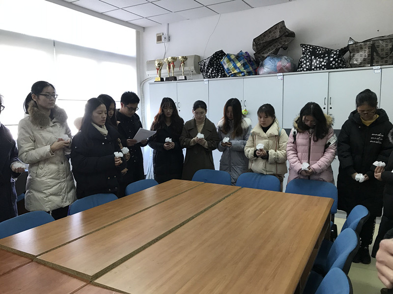 12月13日上午,营销与物流管理学院院本科生党支部全体党员在大学生活动中心广场默哀后,来到德业楼专四423开展“铭记历史、勿忘国耻、不忘初心、砥砺前行”南京大屠杀国家公祭日纪念活动。我院本科生第一党支部书记仲巧林、第二党支部书记肖密及两个支部全体党员参加了此次活动。