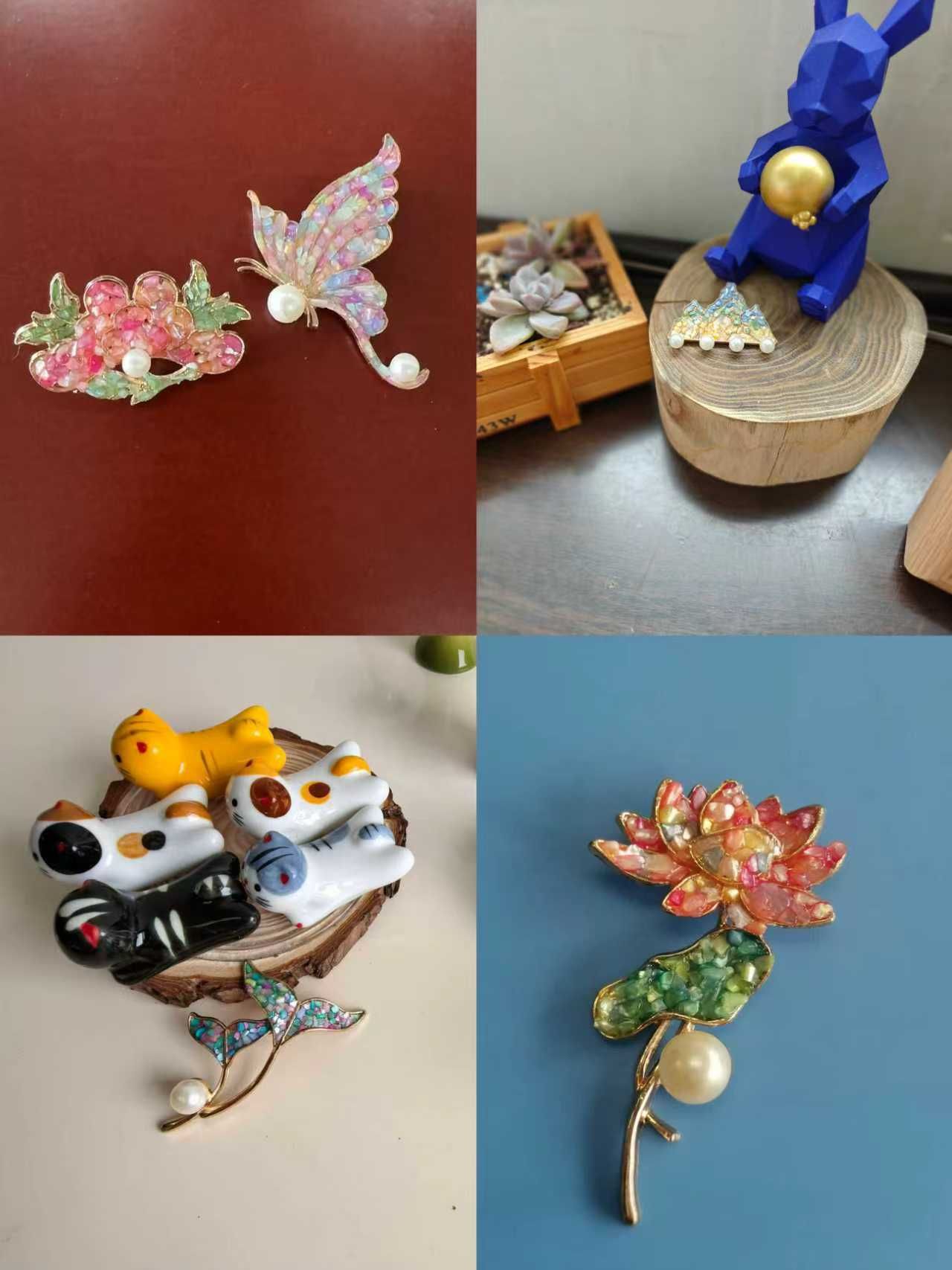 在活动中,大家首先观看学习螺钿的历史、种类和制作工艺的视频。随后,螺钿胸针制作,大家充分发挥自己的创意,利用手中的胸针底版、珍珠、胶水等材料进行镶嵌制作,亲手创作独一无二的“螺钿芳华”。作品完成后,大家纷纷用手机记录下自己的作品以及同事们的合影,定格美好时光。