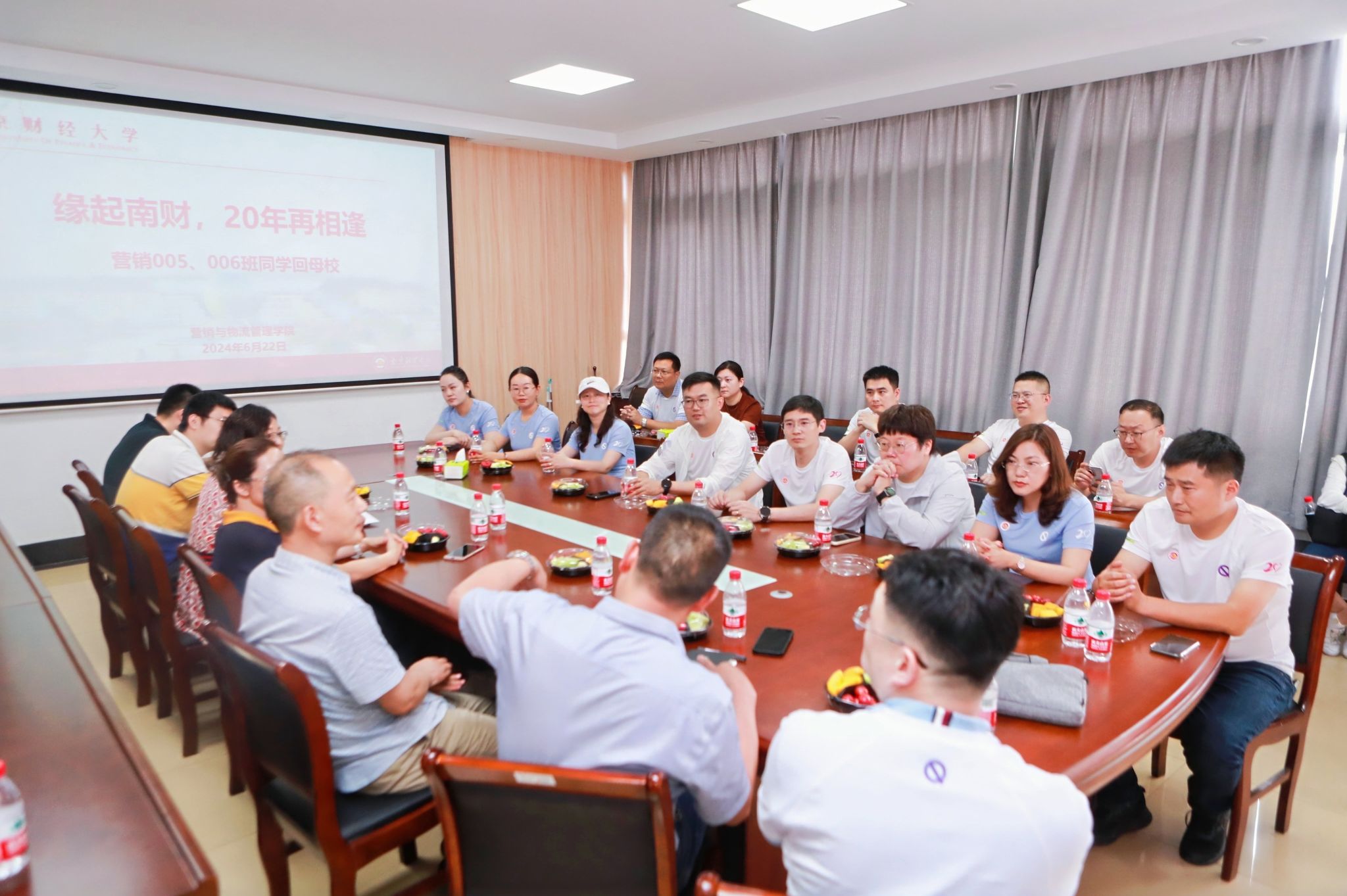 廿载韶华荏苒,归来仍是少年。6月22日下午,市场营销专业005、006班毕业20周年校友返校座谈会在德业楼535会议室举行。校对外联络处副处长王冲,时任班级辅导员丁华仙,营销与物流管理学院相关领导、专业教师和校友们欢聚一堂,共叙师生情谊、追忆青春岁月。