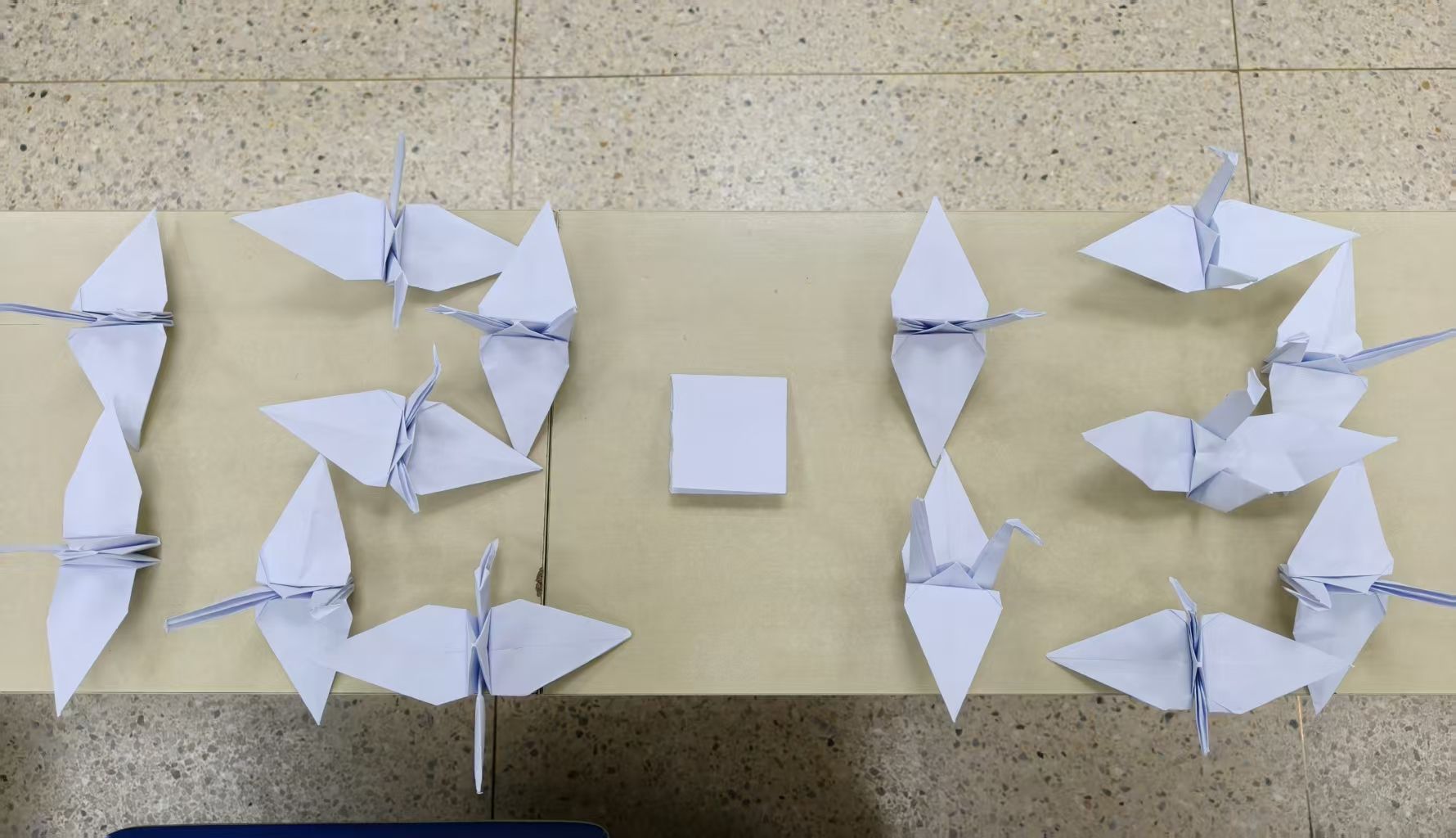 随后,全体党员亲手折叠了千纸鹤,以简约而庄重的方式寄托哀思、祈愿和平。一只只纸鹤承载着对遇难同胞的缅怀、对国泰民安的祝福、对民族复兴的坚定信念,整齐排列成“12·13”字样,静默却有力。