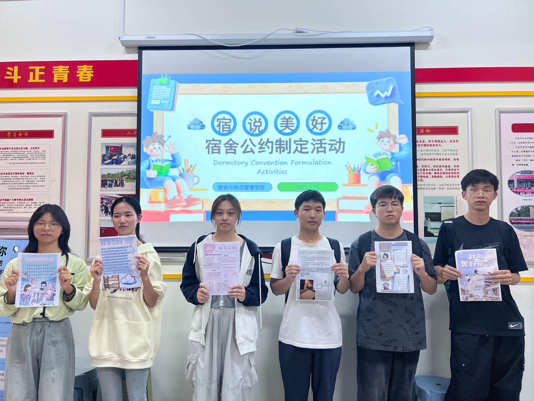 为营造安全、文明、和谐的宿舍生活环境,培养学生自我管理意识,9月25日12:30,营销物流管理学院在中苑8号站“党员先锋营”学生工作站开展“宿说美好·约绘未来”宿舍公约制定评比活动,2025级全体新生宿舍参赛。