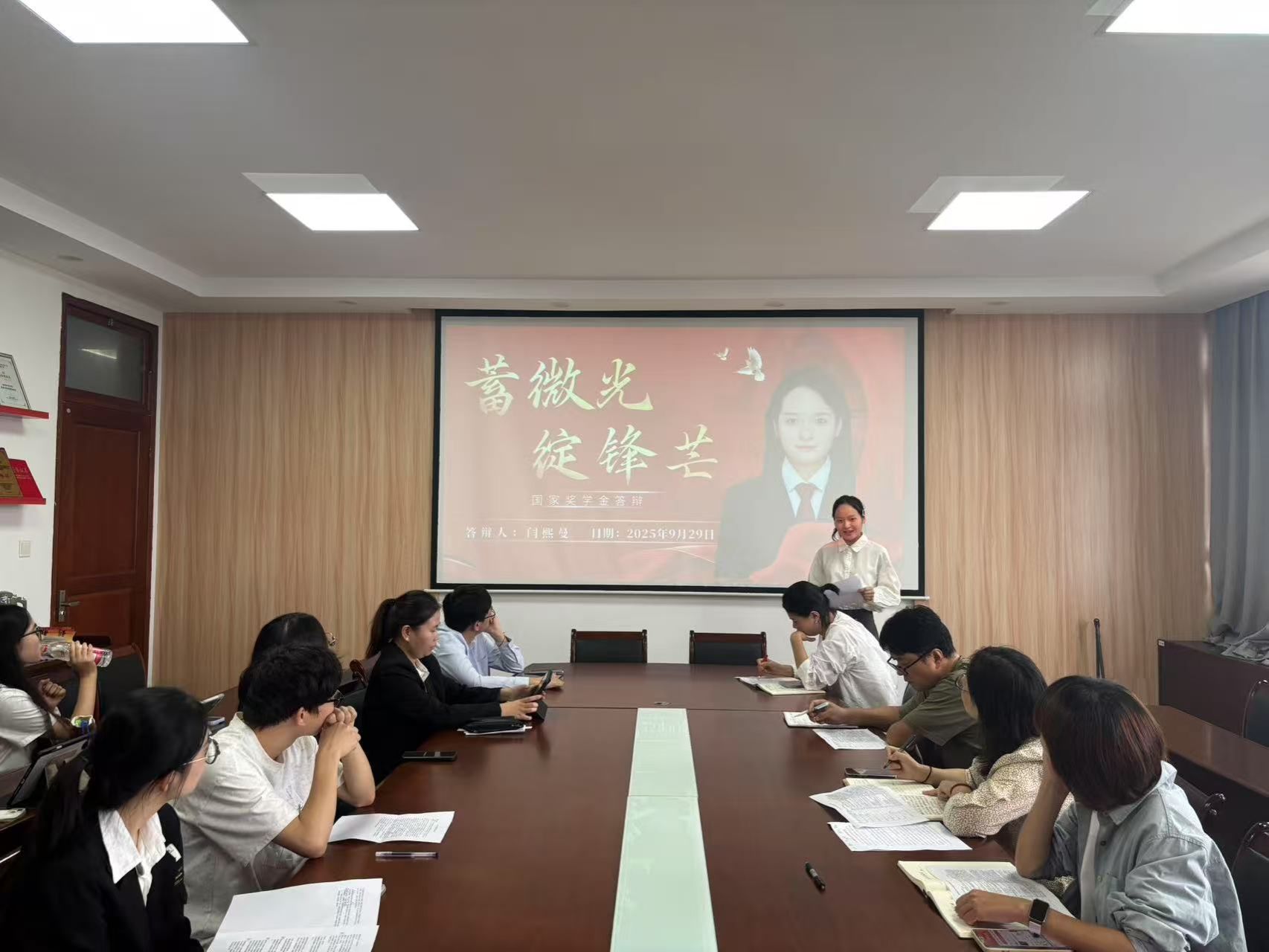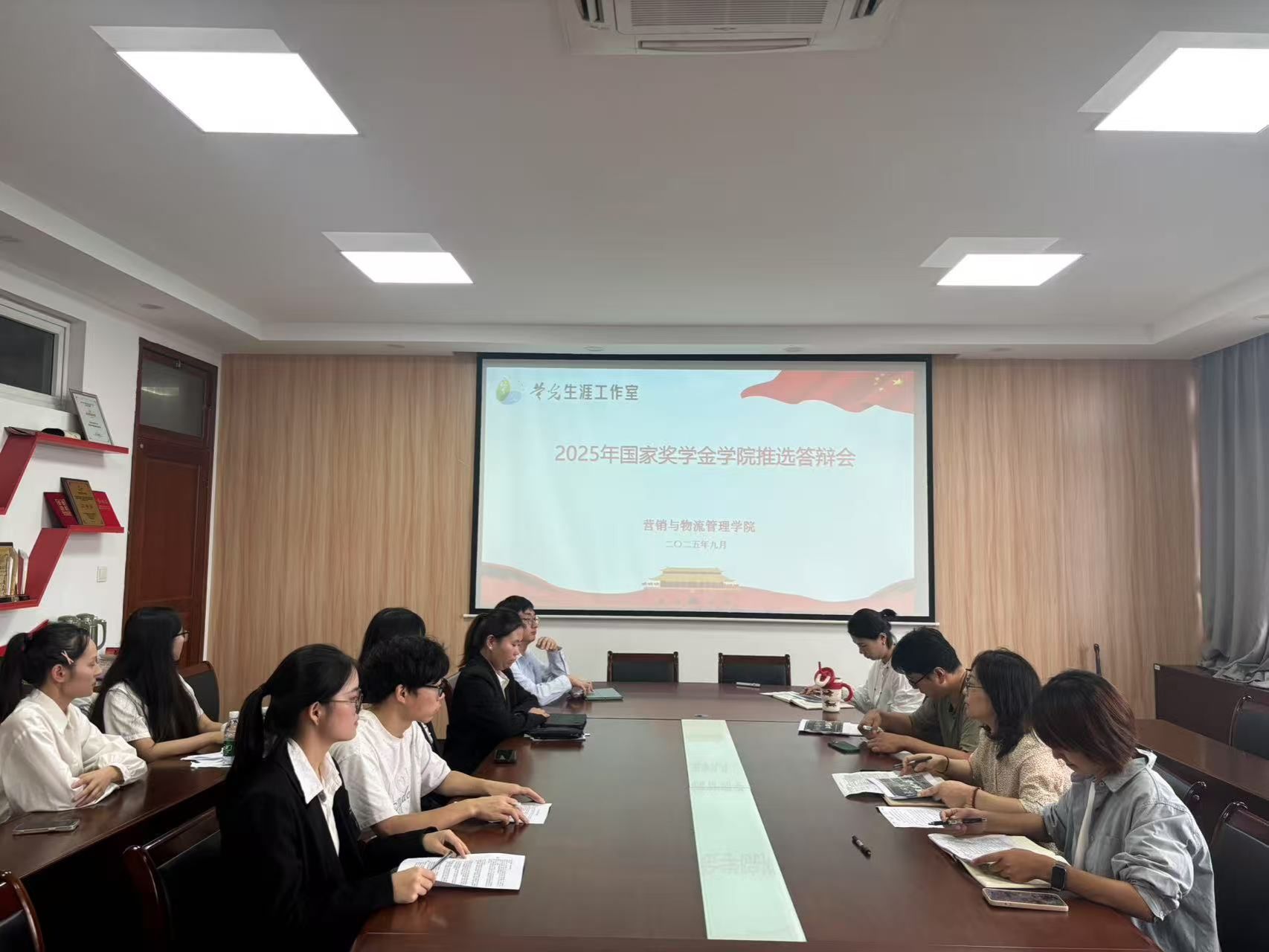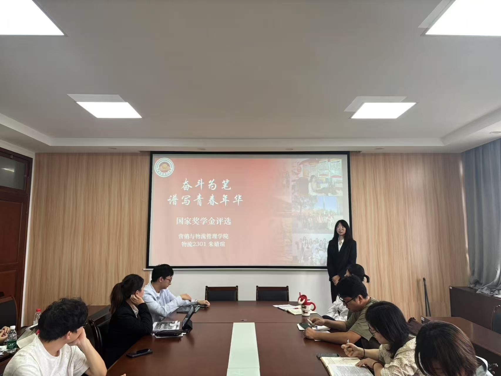 为充分发挥榜样的“引领性”,确保国家奖学金的评选工作公平、公正、公开。2025年9月29日下午,营销与物流管理学院“萤光”生涯工作室于德业楼535举行2024-2025学年本科生国家奖学金推选答辩会。学院党委副书记仲巧林、各年级辅导员老师担任评委,经个人申请、辅导员审核等环节,共有8位同学作为初审候选人进入答辩环节。