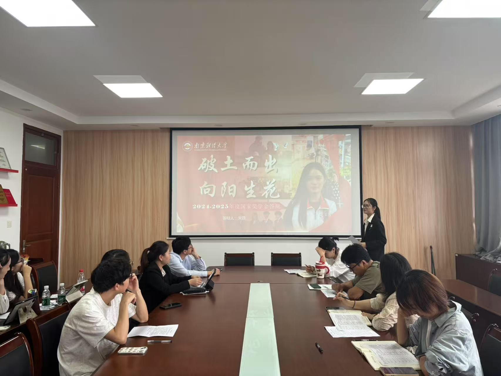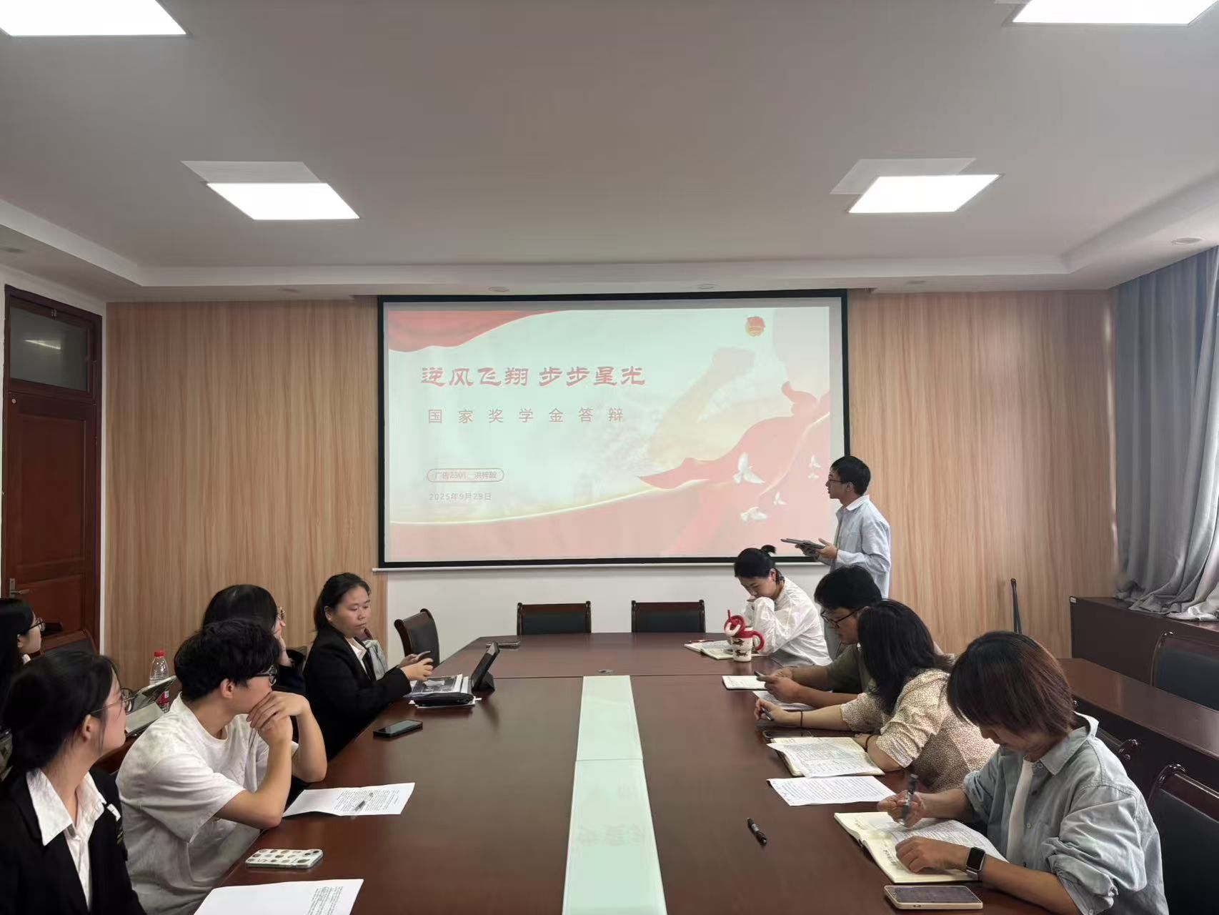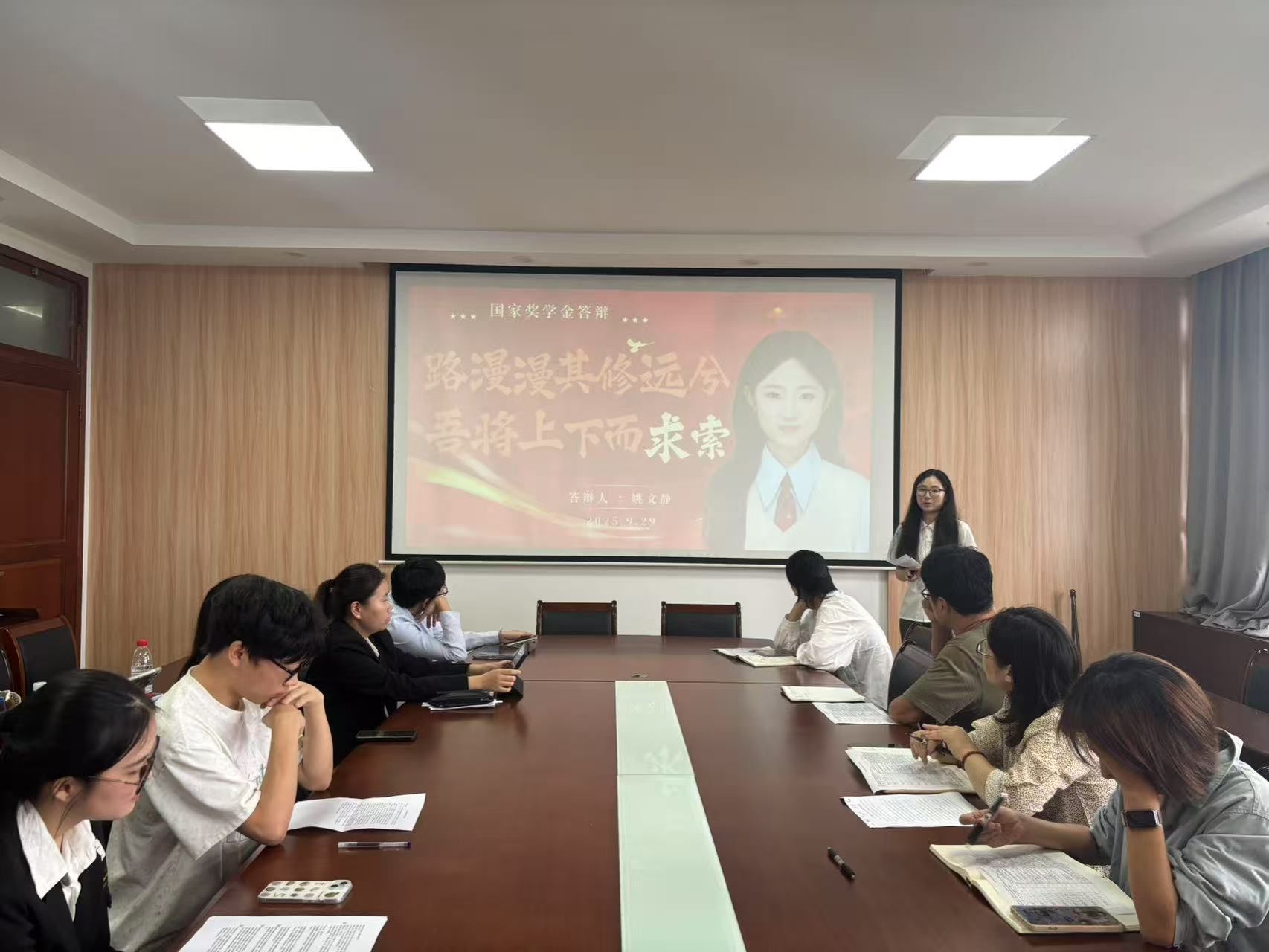 为充分发挥榜样的“引领性”,确保国家奖学金的评选工作公平、公正、公开。2025年9月29日下午,营销与物流管理学院“萤光”生涯工作室于德业楼535举行2024-2025学年本科生国家奖学金推选答辩会。学院党委副书记仲巧林、各年级辅导员老师担任评委,经个人申请、辅导员审核等环节,共有8位同学作为初审候选人进入答辩环节。