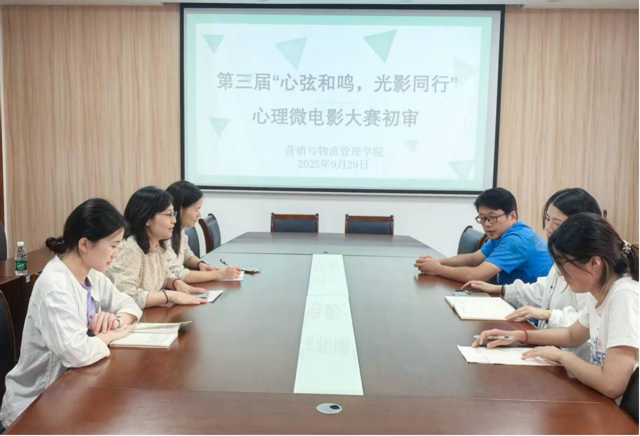 9月29日下午,营销与物流管理学院在德业楼539开展第三届“心弦和鸣,光影同行”心理微电影初评会。